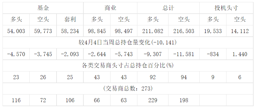 美国商品期货交易委员会(CFTC)最新公布截止4月11日当周COMEX铜期货和期权分类持仓报告: