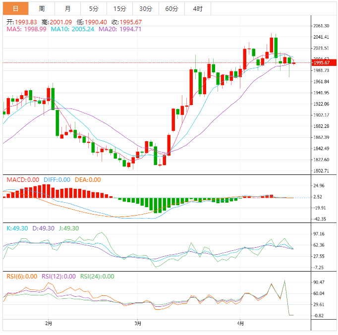周四盘中,现货黄金震荡微跌,目前交投于1992.25美元/盎司附近,本周多位美联储官员都传递了进一步加息的信号,美联储“三号人物”、纽约联储主席威廉姆斯周四上午强调了进一步加息的信号,市场对美联储年内降息预期有所降温,继续给美元个美债收益率提供支撑,令金价承压。本交易日需要关注美国初请失业金人数和美国3月成屋销售年化总数,关注美联储理事沃勒、美联储理事鲍曼、克利夫兰联储主席梅斯特、亚特兰大联储主席博斯蒂克的讲话。