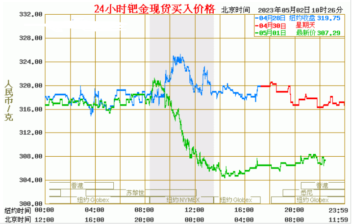今日最新钯金行情:307.29