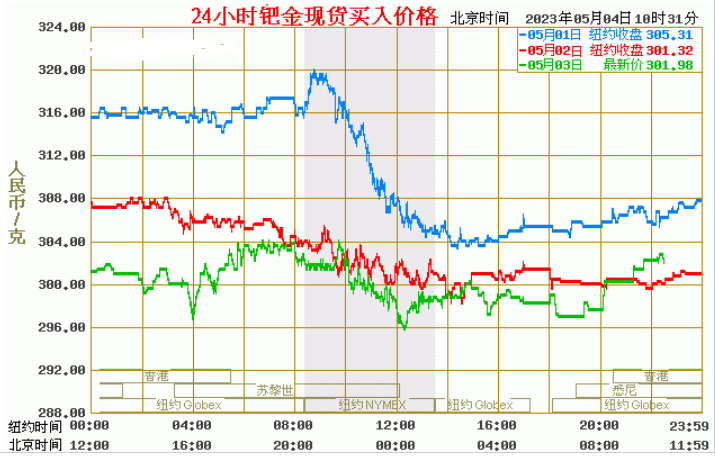 今日最新钯金行情:301.98