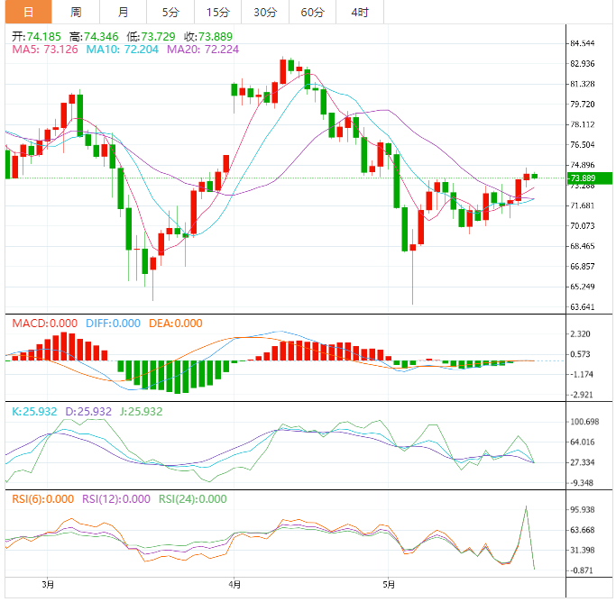 预计今天的交易区间在72.80支撑位和76.10阻力位之间。