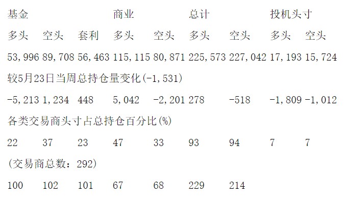 美国商品期货交易委员会(CFTC)最新公布截止5月30日当周COMEX铜期货和期权分类持仓报告: