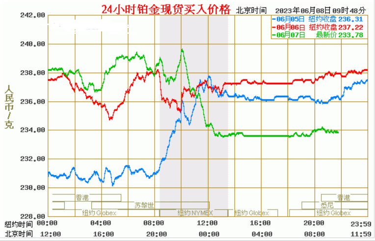 今日最新铂金行情:233.78