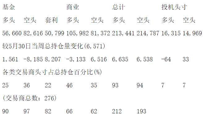 美国商品期货交易委员会(CFTC)最新公布截止6月6日当周COMEX铜期货分类持仓报告: