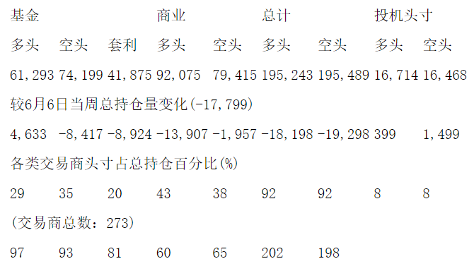 美国商品期货交易委员会(CFTC)最新公布截止6月13日当周COMEX铜期货分类持仓报告: