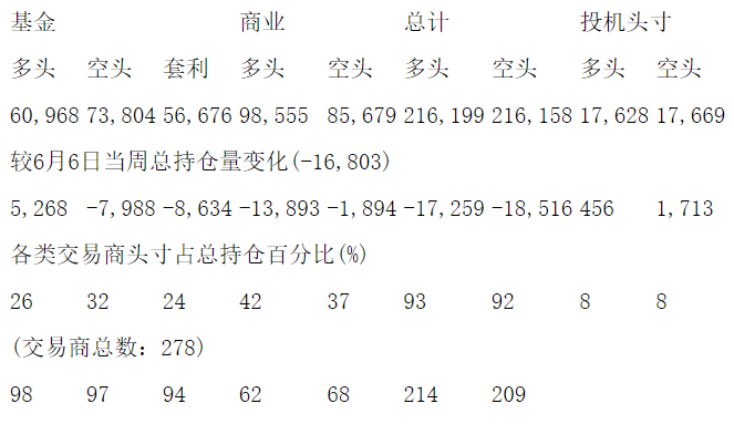 美国商品期货交易委员会(CFTC)最新公布截止6月13日当周COMEX铜期货和期权分类持仓报告: