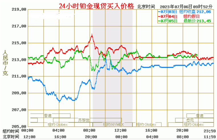 今日最新铂金行情:213.45