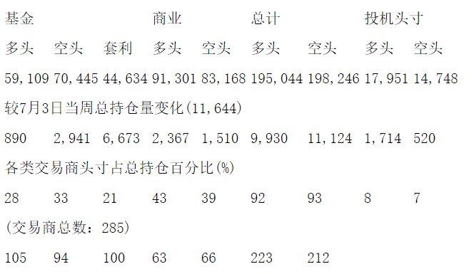 美国商品期货交易委员会(CFTC)最新公布截止7月11日当周COMEX铜期货和期权分类持仓报告: