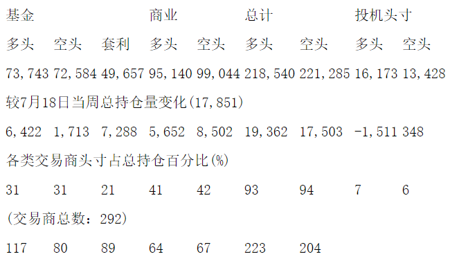 美国商品期货交易委员会(CFTC)最新公布截止7月25日当周COMEX铜期货分类持仓报告: