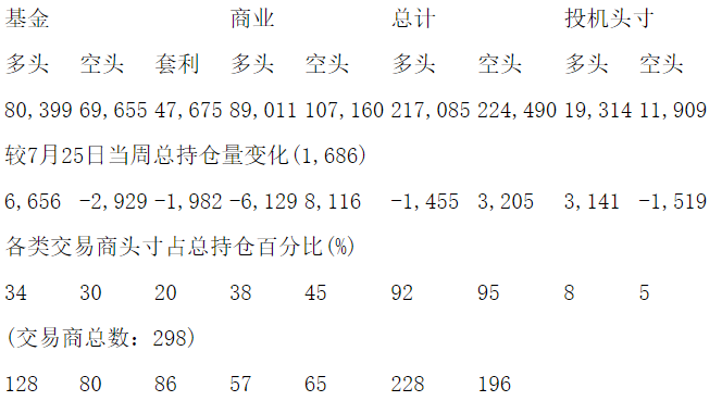 美国商品期货交易委员会(CFTC)最新公布截止8月1日当周COMEX铜期货分类持仓报告: