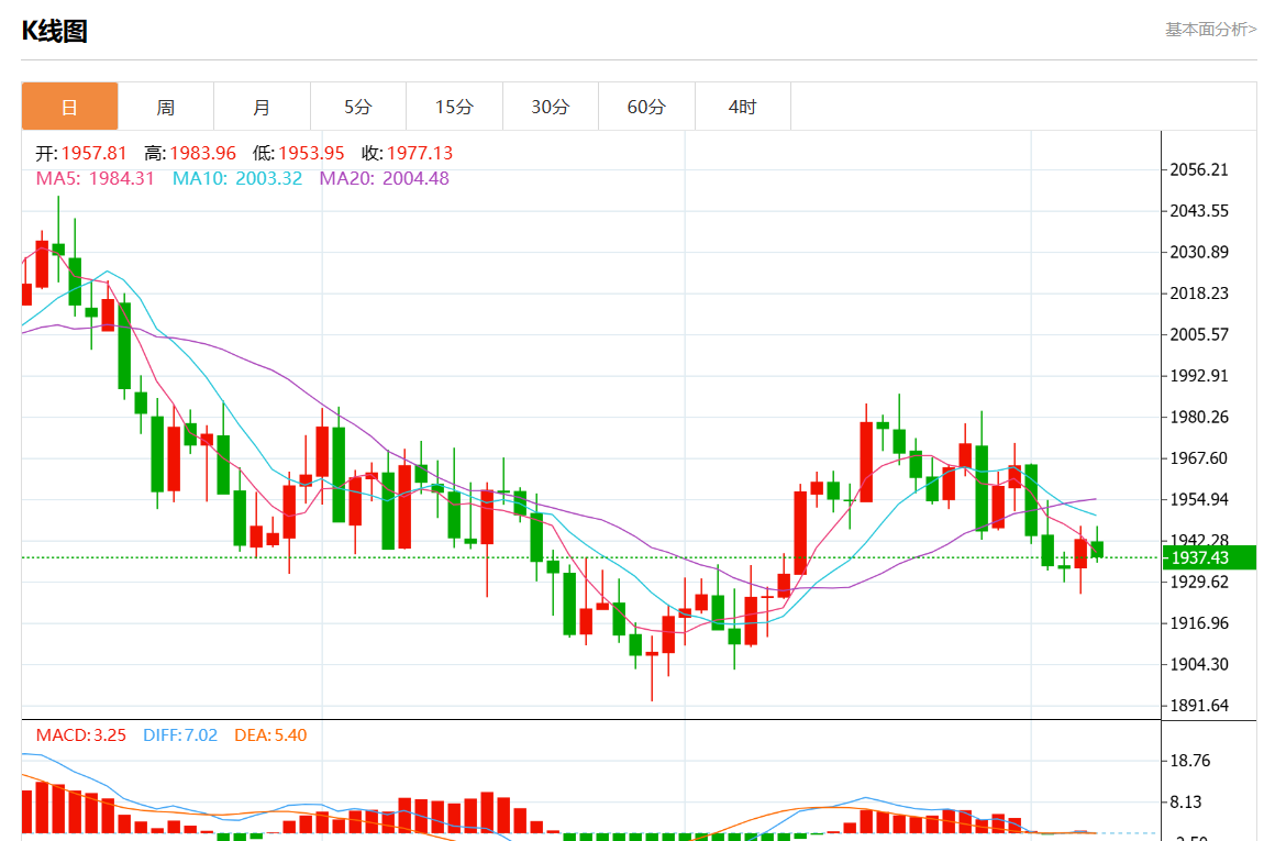 周一欧市盘中,现货黄金报1935.91,跌幅0.34%。