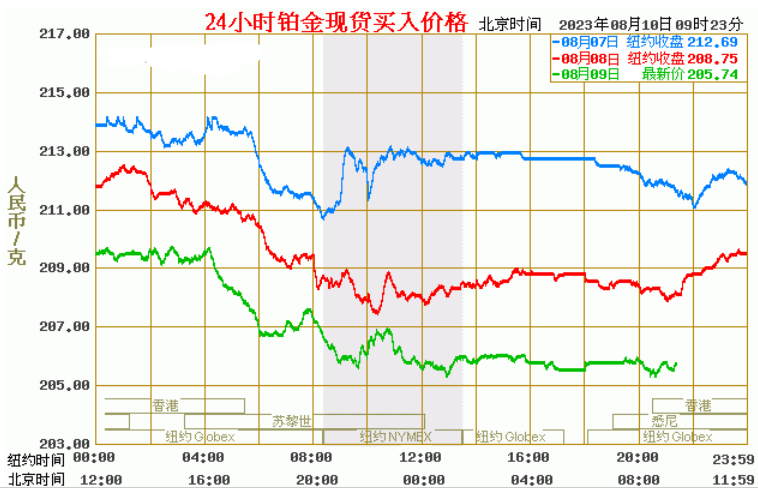 今日最新铂金行情:205.74