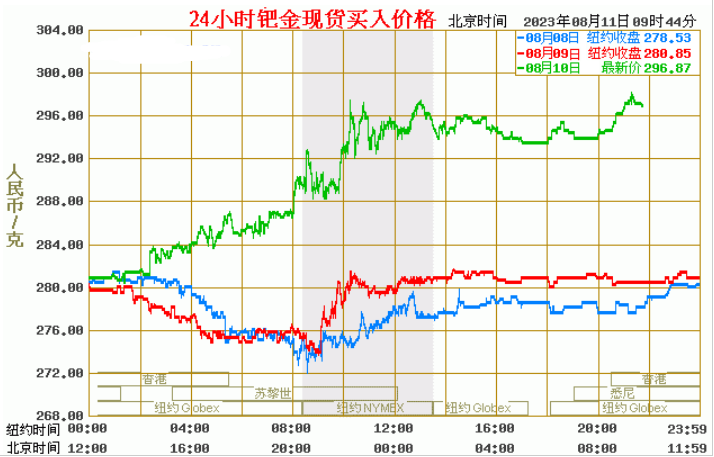 今日最新钯金行情:296.87