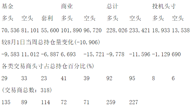美国商品期货交易委员会(CFTC)最新公布截止8月8日当周COMEX铜期货和期权分类持仓报告: