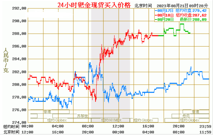 今日最新钯金行情:288.09