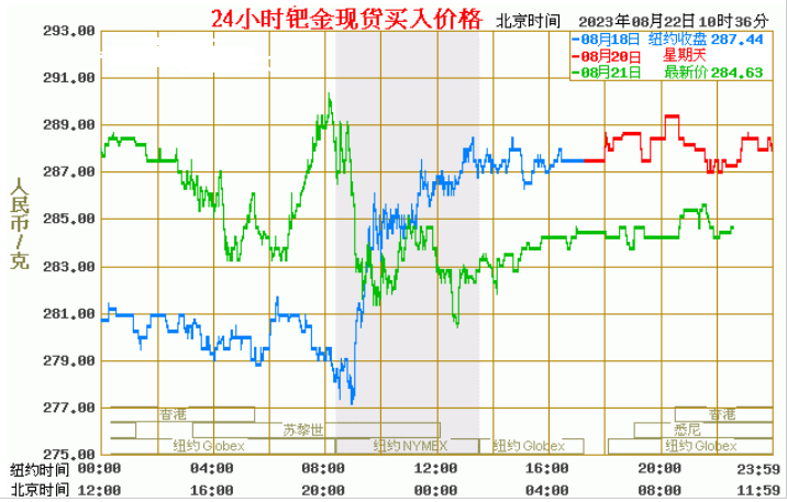 今日最新钯金行情:284.63