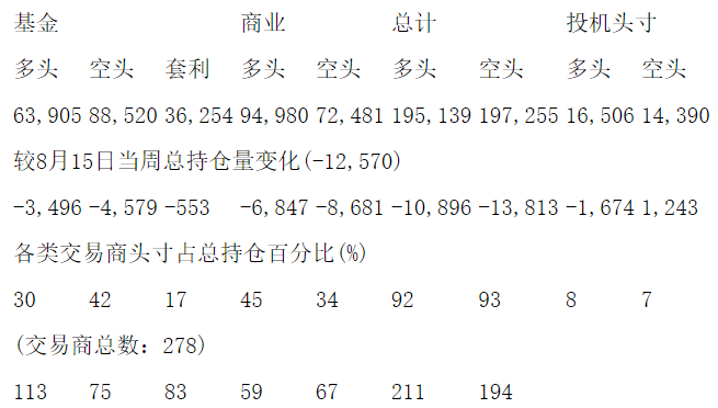 美国商品期货交易委员会(CFTC)最新公布截止8月22日当周COMEX铜期货分类持仓报告: