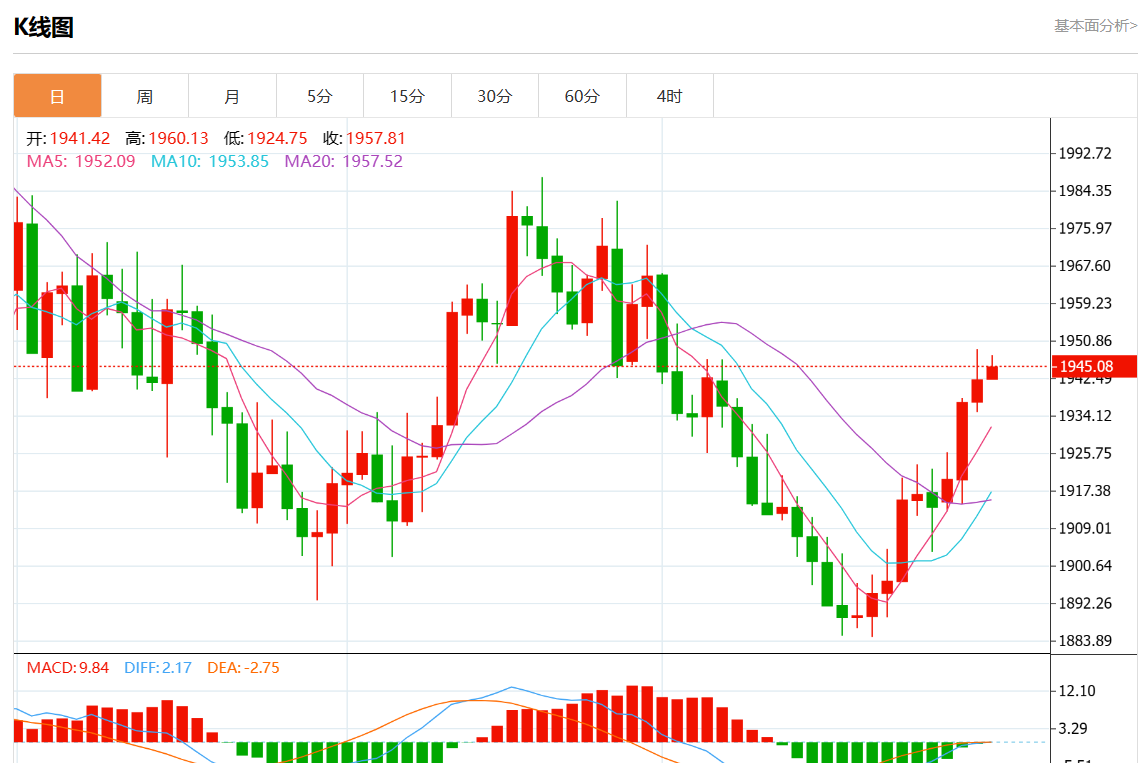 周四欧市盘中,现货黄金报1944.34,涨幅0.11%。