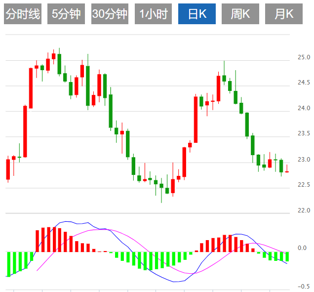 今日预期交易区间在22.40支撑位和23.00阻力位之间。