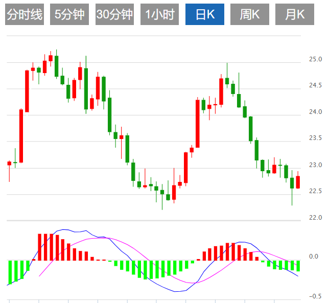 今日预期交易区间在22.40支撑位和23.10阻力位之间。