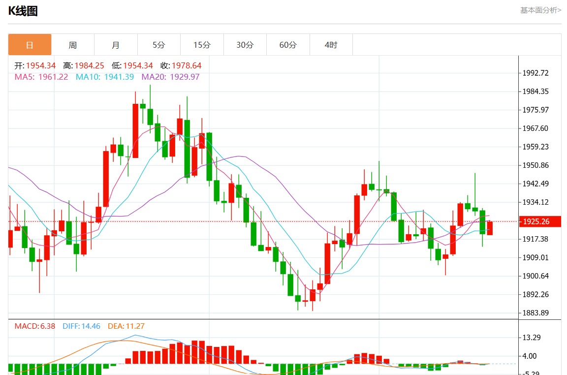 周五欧市盘中,现货黄金报1926.73,涨幅0.36%。