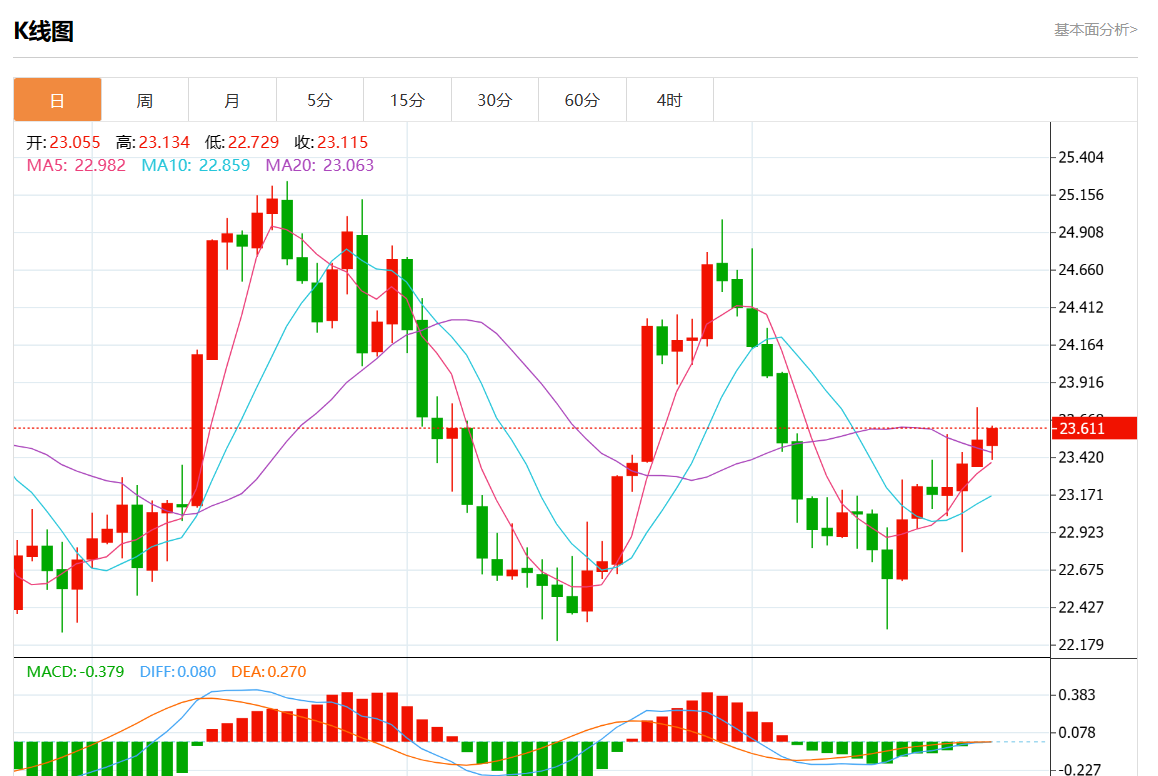 周一欧市盘中,现货白银报23.430,跌幅0.42%。