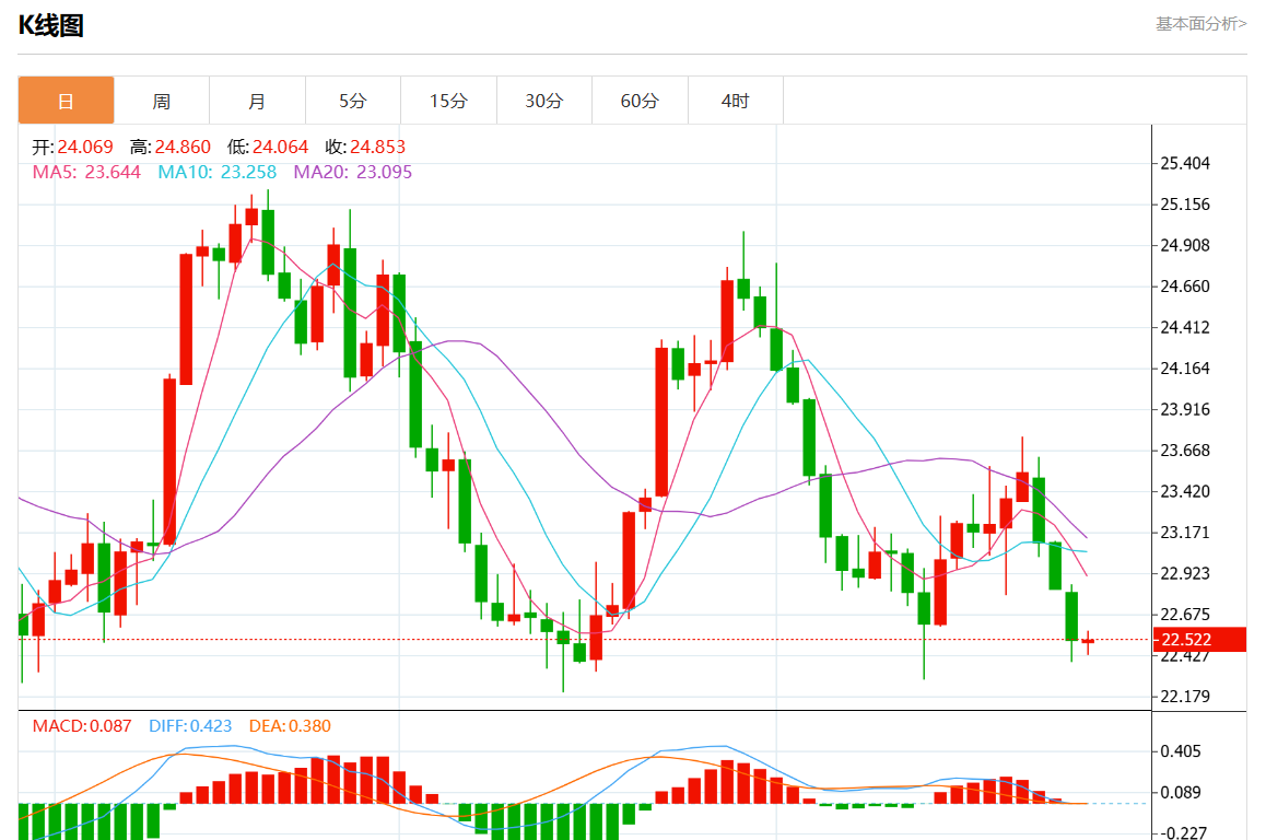 周四欧市盘中,现货白银报22.527,涨幅0.03%。