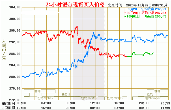 今日最新钯金行情:288.45