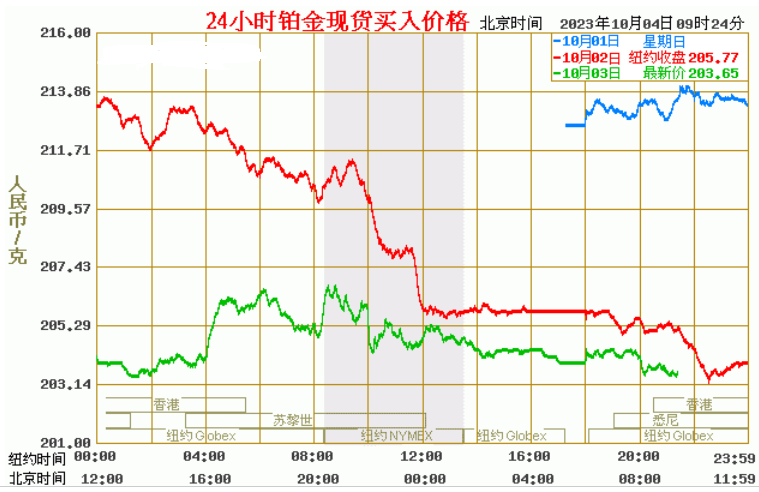 铂金价格走势图 今日最新铂金行情(2023年10月4日)