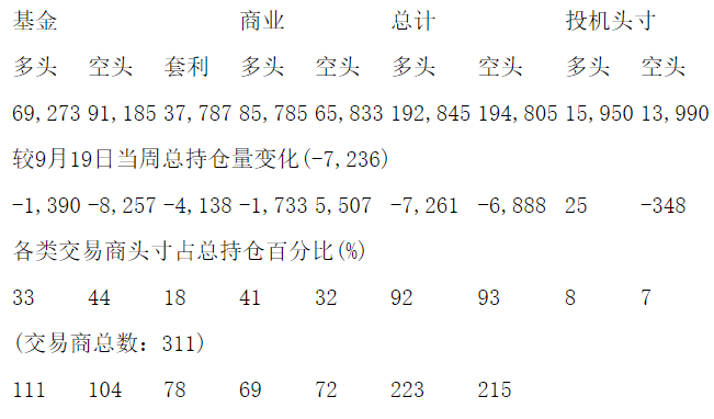 美国商品期货交易委员会(CFTC)最新公布截止10月3日当周COMEX铜期货分类持仓报告: