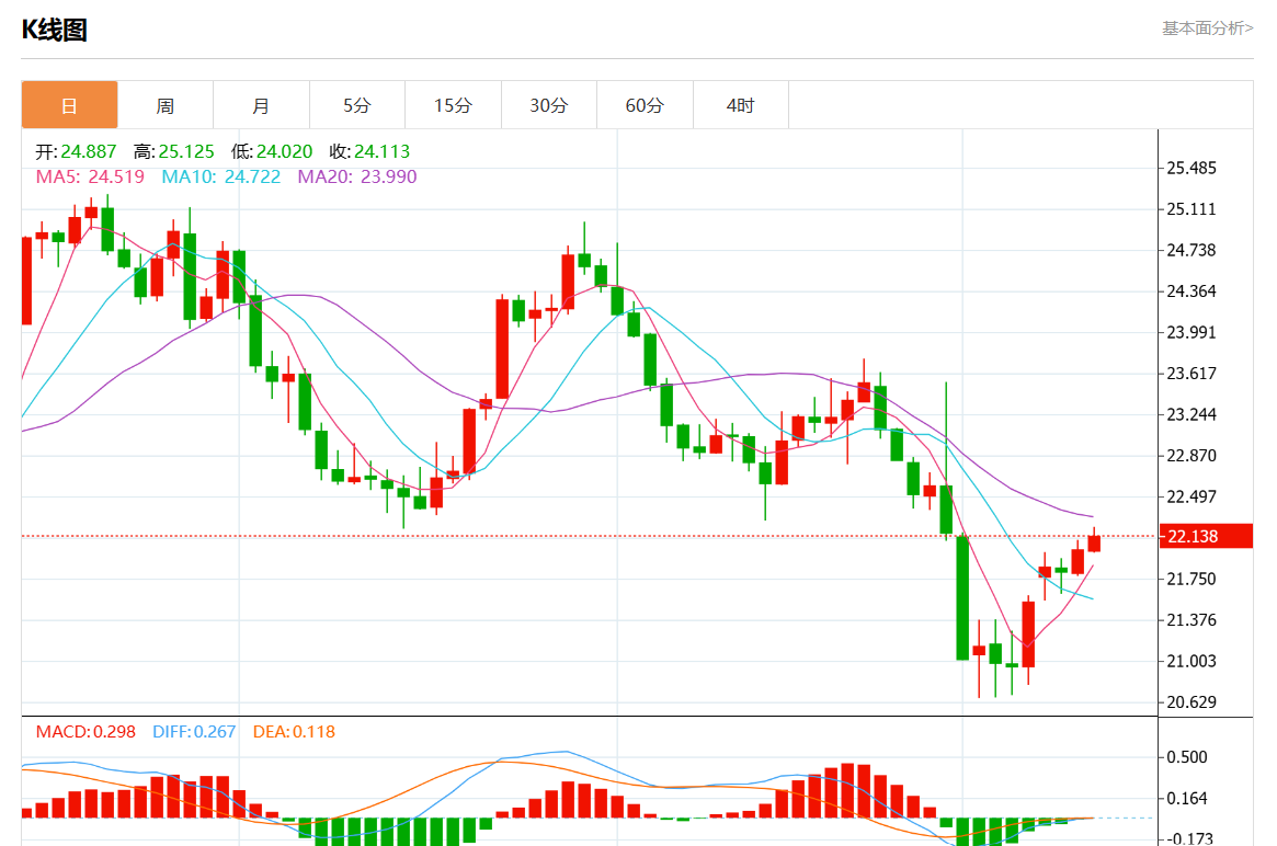 周四欧市盘中,现货白银报22.130,涨幅0.50%。