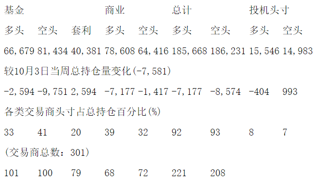 美国商品期货交易委员会(CFTC)最新公布截止10月10日当周COMEX铜期货分类持仓报告: