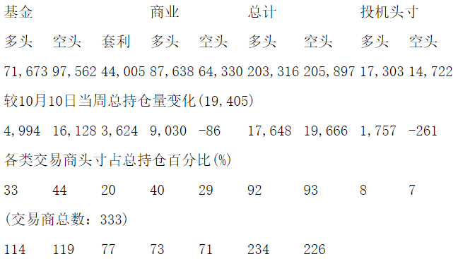 美国商品期货交易委员会(CFTC)最新公布截止10月17日当周COMEX铜期货分类持仓报告: