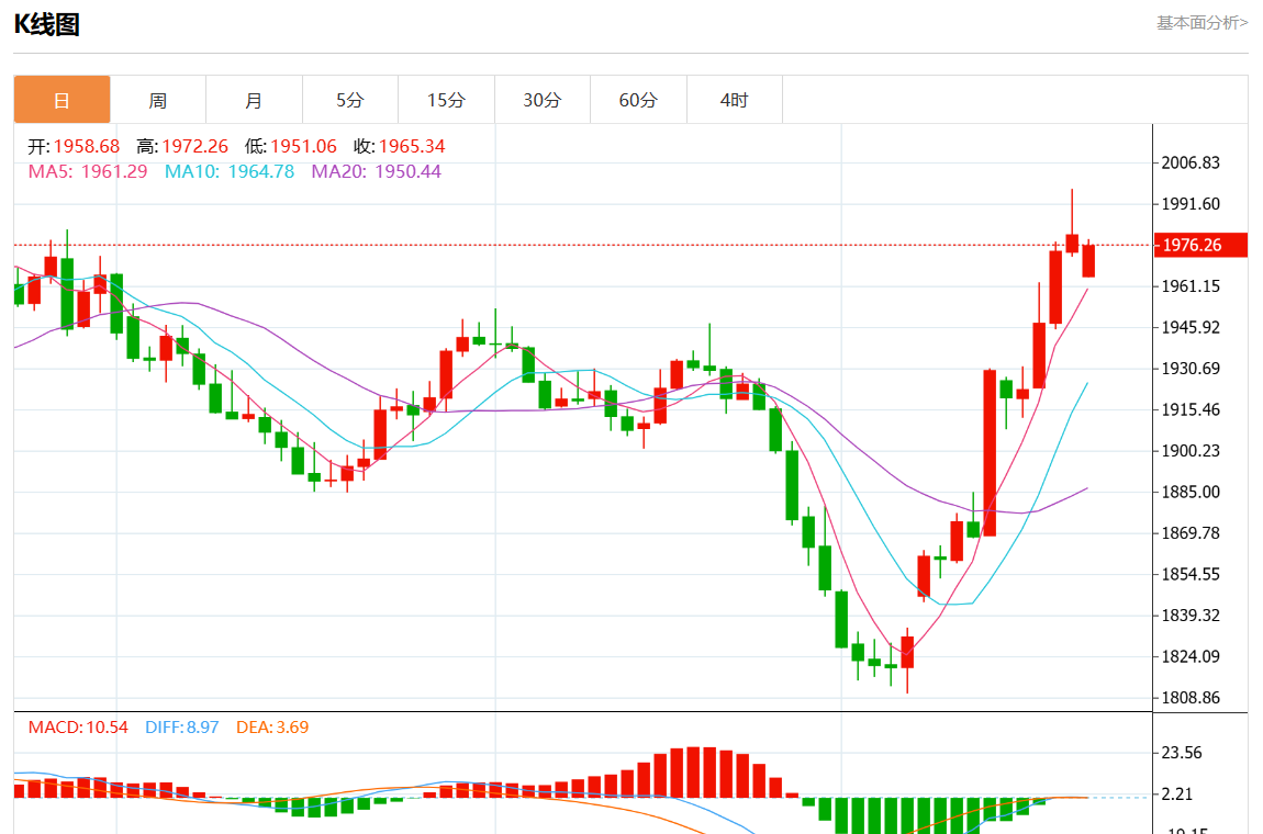 周一欧市盘中,现货黄金报1981.15,涨幅0.05%。