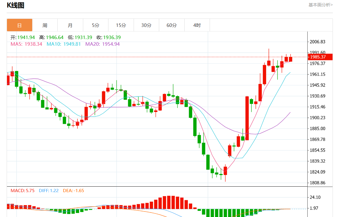 周四欧市盘中,现货黄金报1987.17,涨幅0.40%。