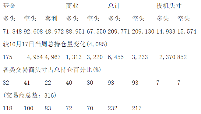 美国商品期货交易委员会(CFTC)最新公布截止10月24日当周COMEX铜期货分类持仓报告: