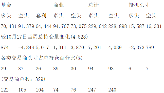 美国商品期货交易委员会(CFTC)最新公布截止10月24日当周COMEX铜期货和期权分类持仓报告: