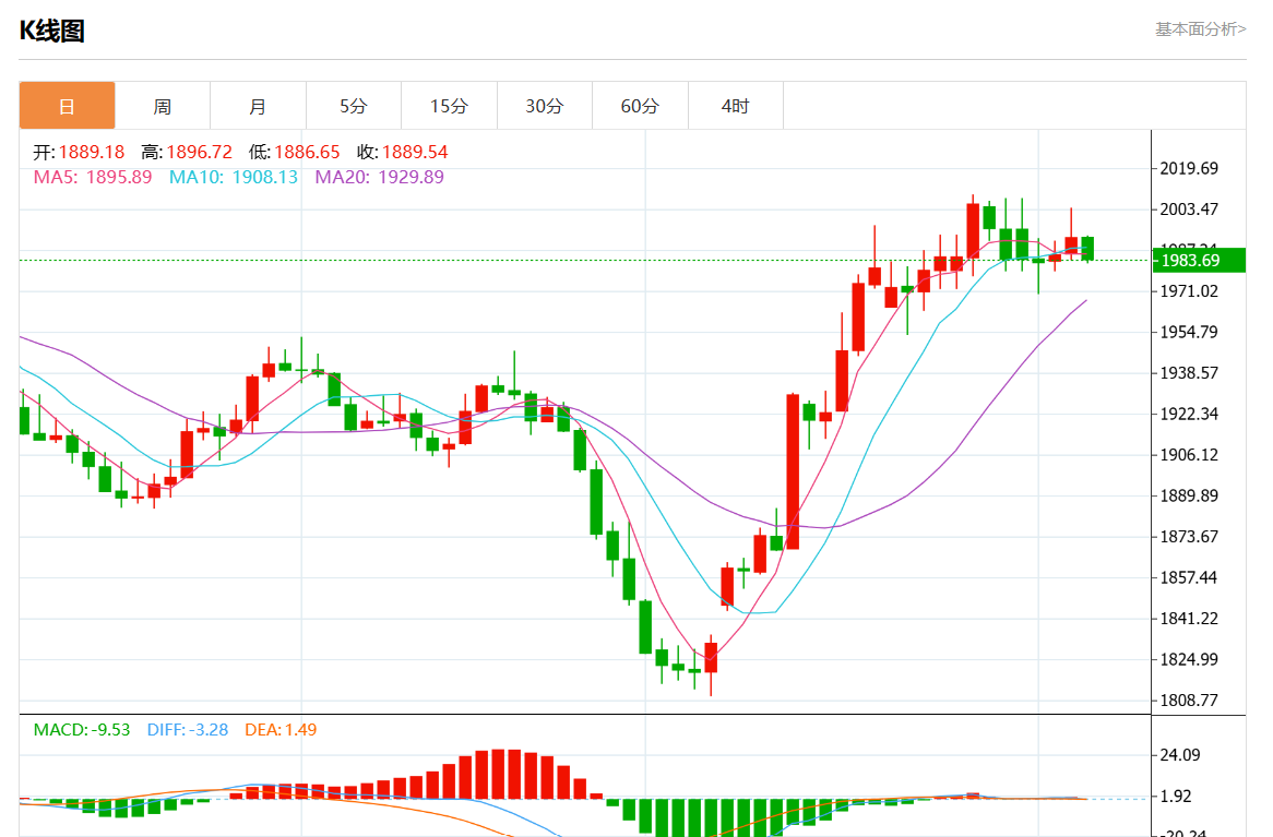 周一欧市盘中,现货黄金报1986.68,跌幅0.28%。