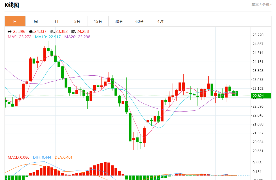 周二欧市盘中,现货白银报22.740,跌幅1.17%。