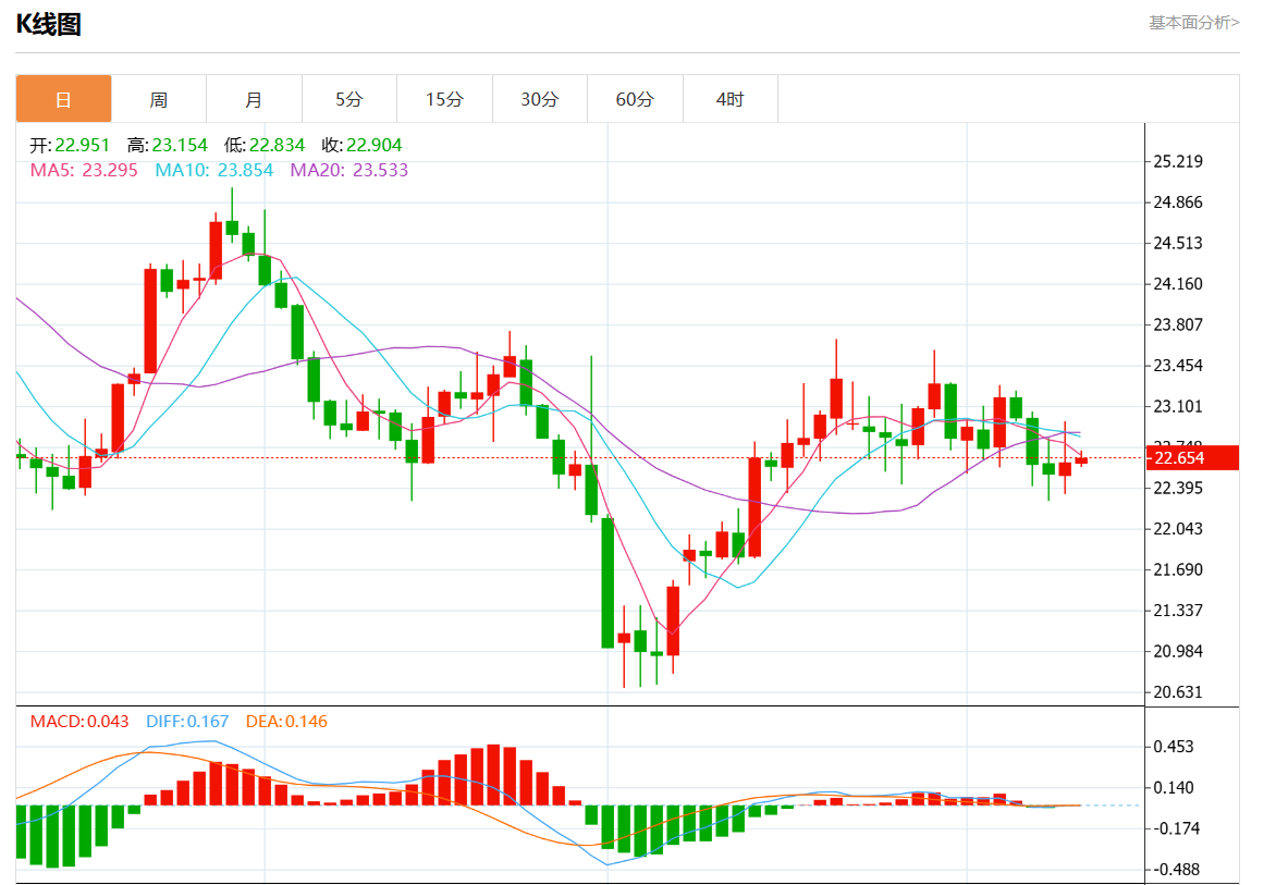 周五欧市盘中,现货白银报22.581,跌幅0.15%。