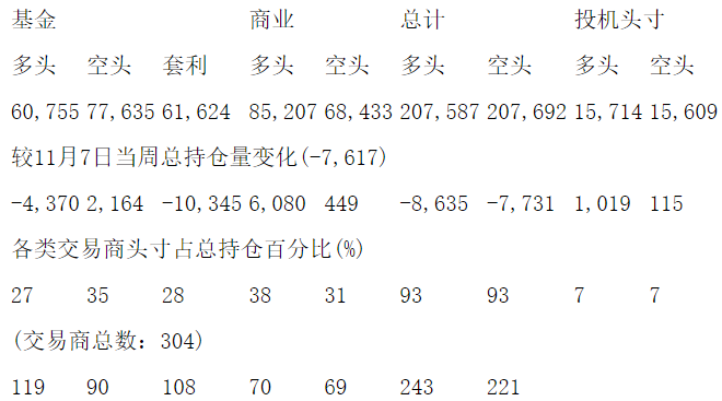 美国商品期货交易委员会(CFTC)最新公布截止11月14日当周COMEX铜期货和期权分类持仓报告: