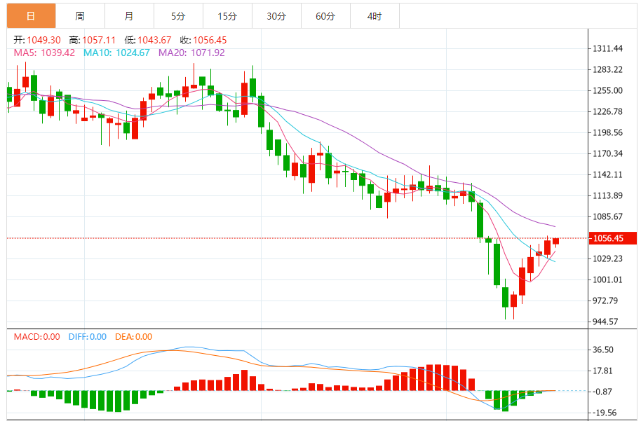 钯金价格走势图 今日最新钯金行情(2023年11月20日)