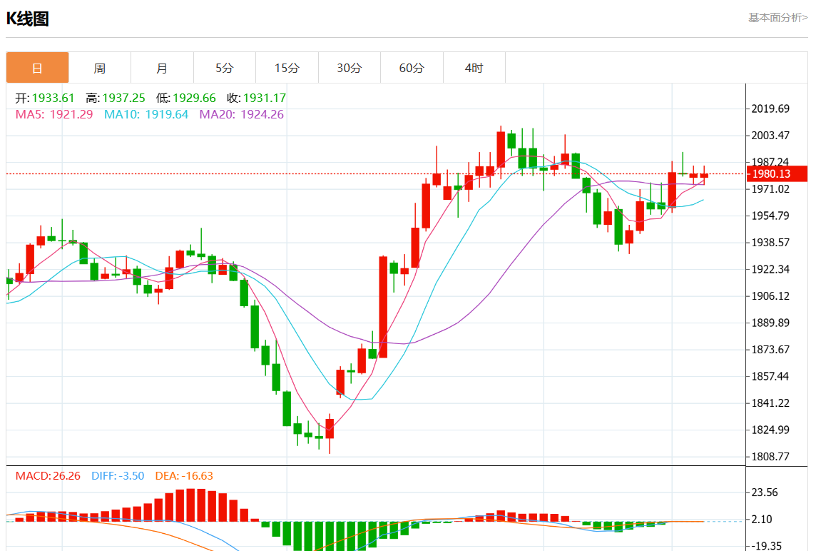 周一欧市盘中,现货黄金报1980.91,涨幅0.03%。