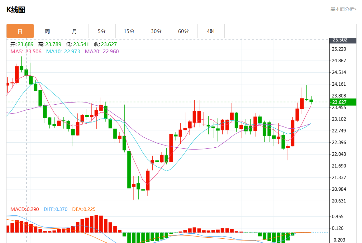 周一欧市盘中,现货白银报23.640,跌幅0.22%。