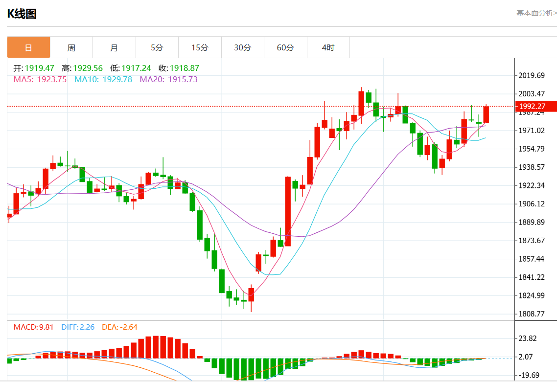 周二欧市盘中,现货黄金报1990.95,涨幅0.68%。