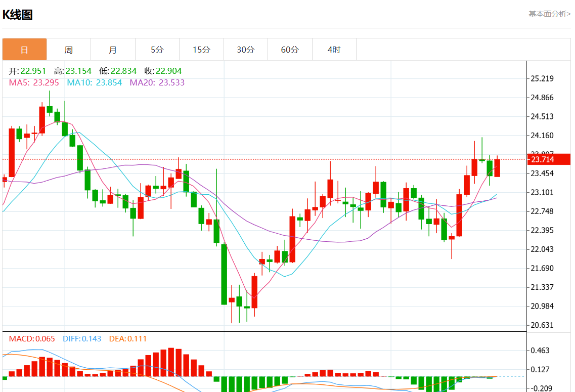 白银交易策略:在23.40上方做多头,目标在24.00和24.15。