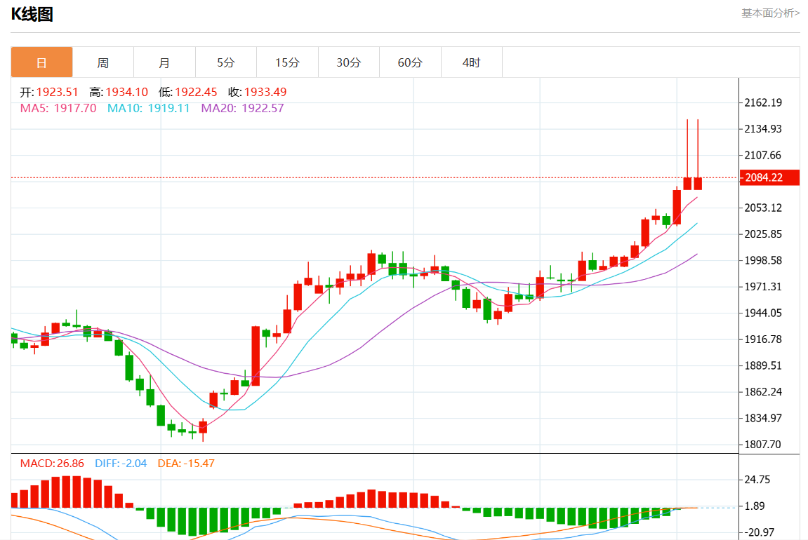 周一欧市盘中,现货黄金报2064.59,涨幅0.32%。