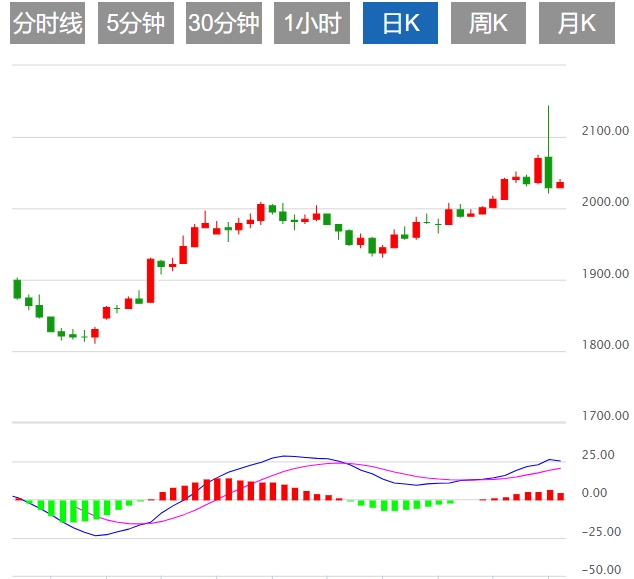 今日预期交易区间在2000.00支撑位和2050.00阻力位之间。