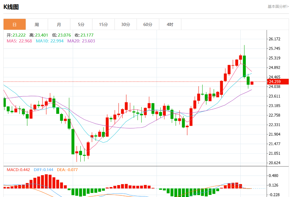 周三欧市盘中,现货白银报24.370,涨幅0.17%。