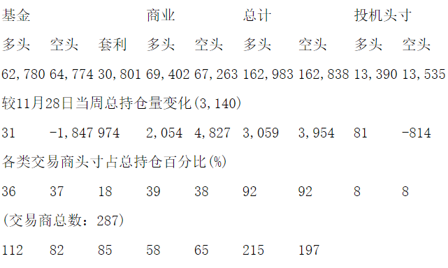 美国商品期货交易委员会(CFTC)最新公布截止12月5日当周COMEX铜期货分类持仓报告: